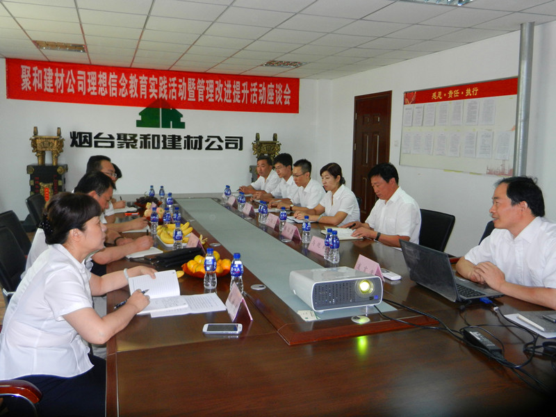 常務副總經(jīng)理馬現(xiàn)來首先向集團公司領(lǐng)導匯報了聚和建材非公有制經(jīng)濟人士理想信念教育實踐活動、“強化責任心、樹立事業(yè)心、提高忠誠度”活動的開展情況以及管理改進提升的方針措施,并結(jié)合煙臺砂漿市場現(xiàn)狀將公司兩年規(guī)劃做了詳細闡述。