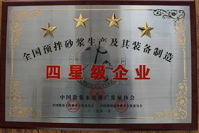 預拌砂漿星級企業(yè)評審,是依據商務部頒布的《預拌砂漿生產及其裝備制造企業(yè)等級評價規(guī)范》(SB/T10723-2012)和中國散協(xié)關于《全國預拌砂漿生產及其裝備制造企業(yè)等級評價工作實施辦法》的有關要求進行的。先由全國預拌砂漿及其裝備制造企業(yè)等級評價工作考評小組派員對參評企業(yè)進行現(xiàn)場實地考評,之后召開評審小組集體會議研究審議通過,最后網上公示評審結果。本次為首批表彰,獲得四星級以上的預拌砂漿企業(yè)全國僅有五家,其中五星級1家,四星級4家。